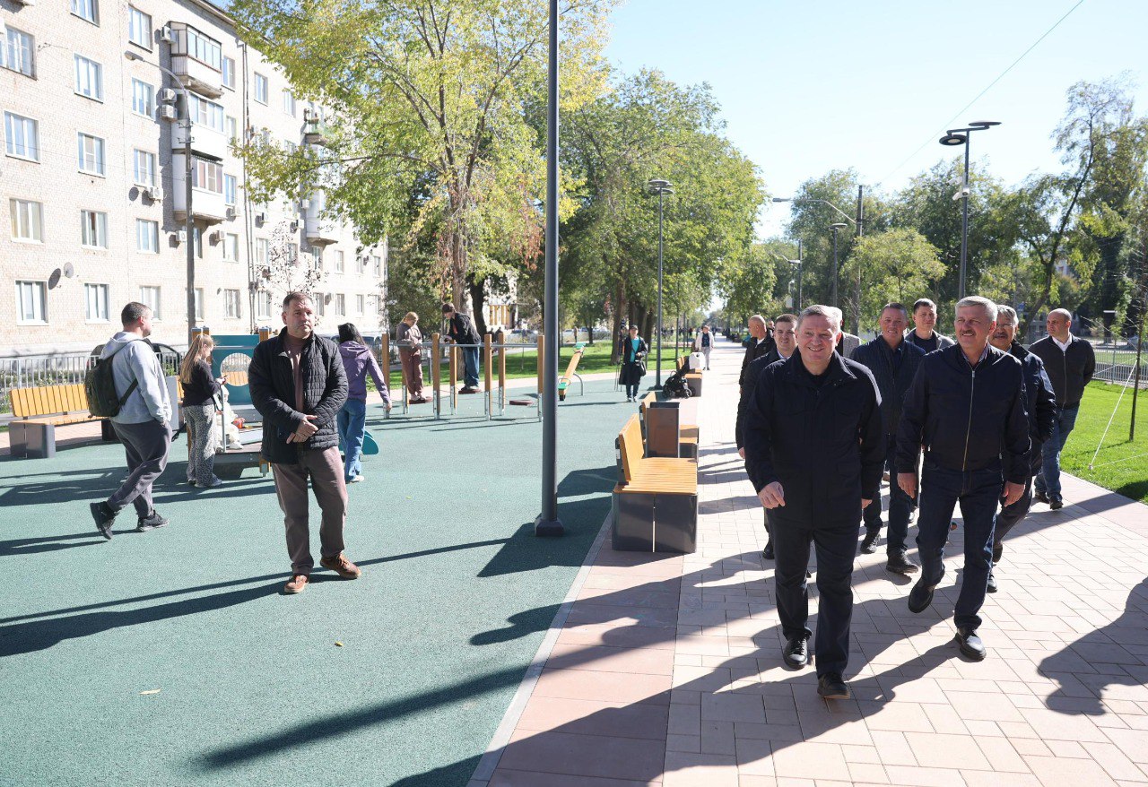 Губернатор Волгоградской области Андрей Бочаров посетил Краснооктябрьский район. Вместе с главой Волгограда Владимиром Марченко осмотрел обновлённый участок парка на проспекте Металлургов.