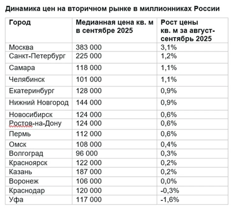 Эксперты заметили легкое оживление на рынке вторичного жилья: сентябрь 2025 года принес небольшой рост цен в большинстве городов с населением от 1 млн человек.