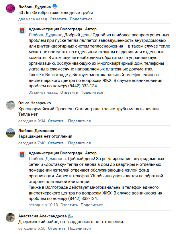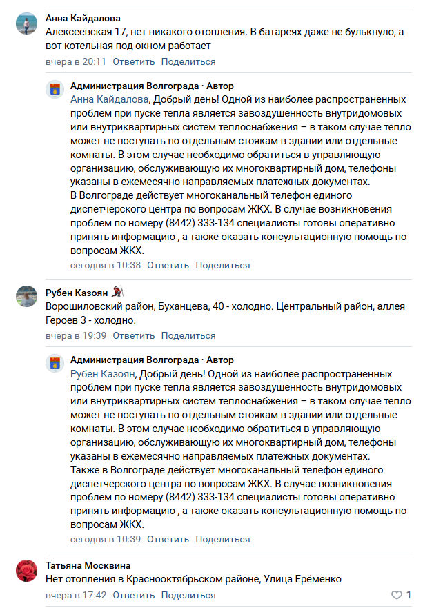 В ответ на жалобу администрация Волгограда рекомендовала женщине позвонить на многоканальный телефон единого диспетчерского центра ЖКХ. Однако у жительницы возникает резонный вопрос: почему она каждый год должна лично напоминать УК о необходимости удалить воздушные пробки, вместо того чтобы специалисты делали эту работу заблаговременно.