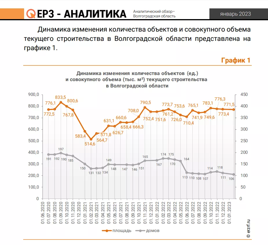 На сегодняшний день в Волгоградской области ведётся активное строительство 228 многоквартирных домов. Их общая площадь составляет 1,1 миллион квадратных метров. Градостроительный потенциал в этом сегменте оценивается в 1,72 миллиона квадратных метров.