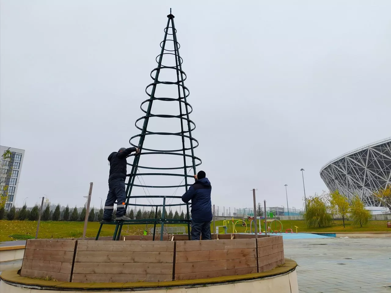 В Центральном парке культуры и отдыха началась масштабная подготовка к Новому году. Первой праздничной локацией стал каток «Лагуна», где приступили к установке главной ели