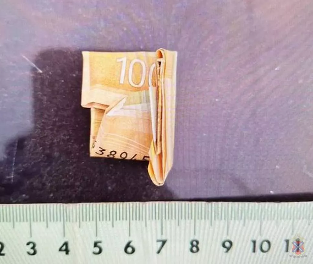 В результате досмотра у автомобилиста нашли свёрток, спрятанный 100-рублевую банкноту. Внутри был порошок. Экспертиза установила, что это наркотическое средство синтетического происхождения — смесь, содержащая производное эфедрона. Общий вес изъятого вещества составил более 2 граммов.