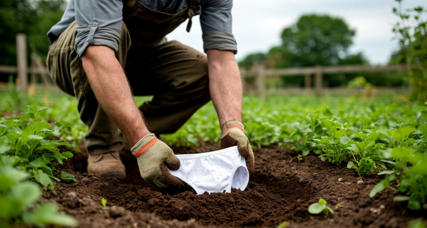 Идея проста: возьмите старое нижнее бельё — неважно, трусы, майку или другую хлопковую вещь — и закопайте её в землю на глубину около 15 сантиметров. Лучшее время для этого — май, когда почва уже достаточно прогрелась, и микроорганизмы начинают активно работать. Через два месяца вещь нужно выкопать и внимательно осмотреть.